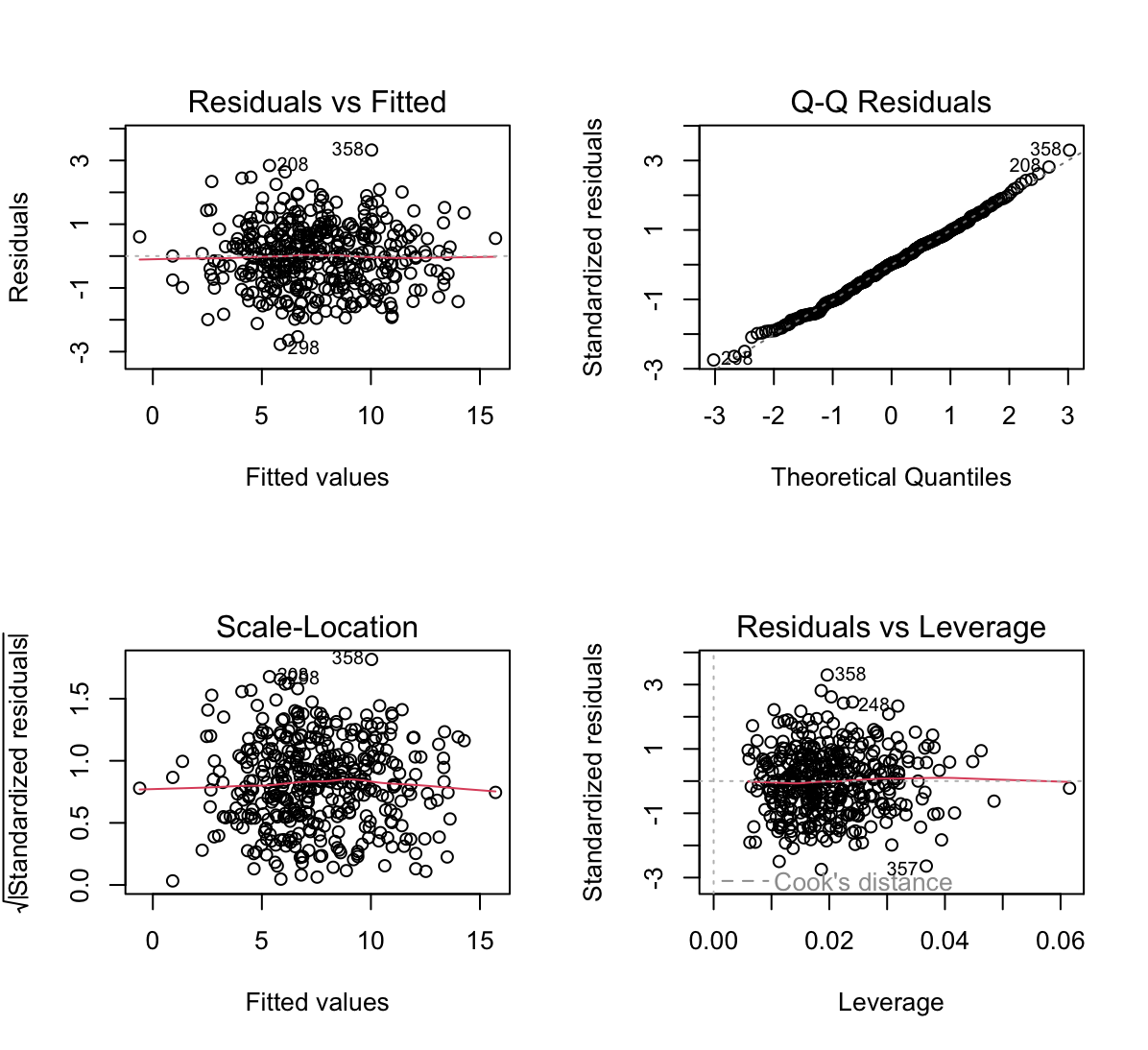 par(mfrow=c(2,2)) plot(carseats_lm2)